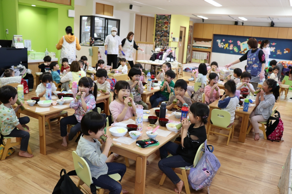 恵方巻は自分たちで作って、今年の方角「南南東」を向いて食べました。